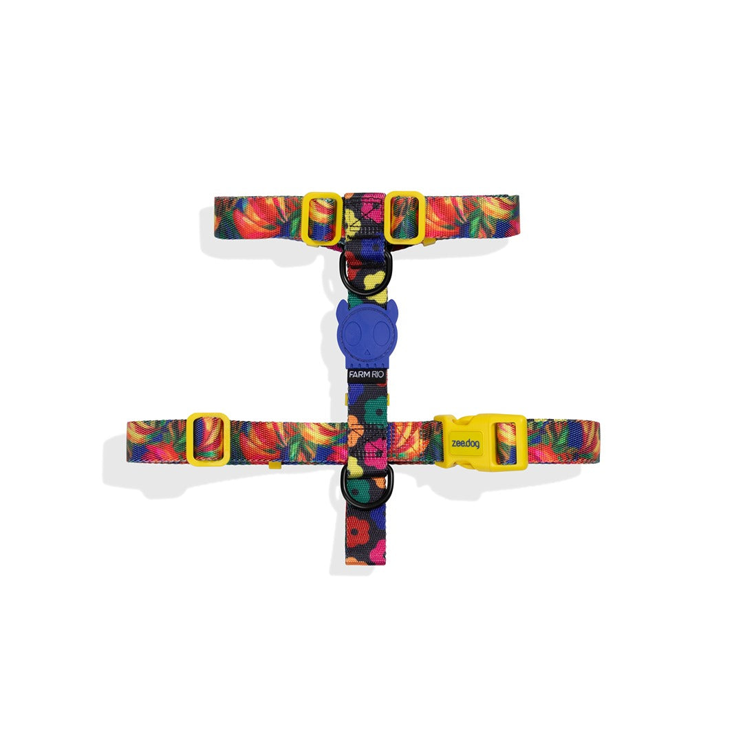 Samba H-Tipi Göğüs Tasması, FARM Rio × Zee.Dog iş birliğinin özel bir parçasıdır. FARM Rio’nun ikonik desenlerini taşıyan bu göğüs tasması, emniyet kemerlerinde kullanılan yüksek dayanıklılığa sahip polyester malzemeden üretilmiştir. Boyun ve gövde kısımlarında geniş ayar aralığı sunarak köpeğinizin vücuduna kolayca uyum sağlar.