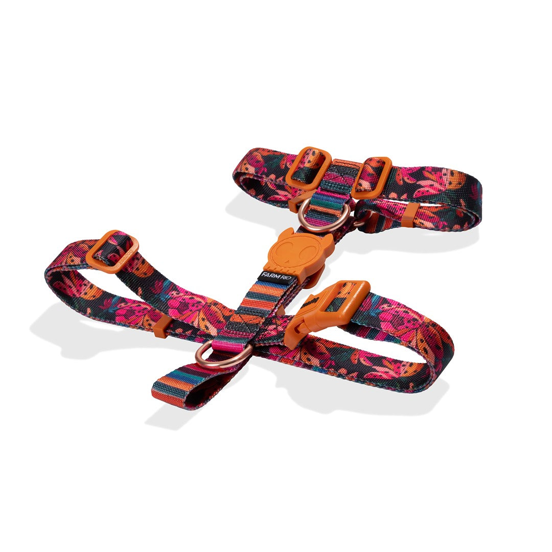 Selva H-Tipi Göğüs Tasması, FARM Rio × Zee.Dog iş birliğinin özel bir parçasıdır. FARM Rio’nun ikonik desenlerini taşıyan bu göğüs tasması, emniyet kemerlerinde kullanılan yüksek dayanıklılığa sahip polyester malzemeden üretilmiştir. Boyun ve gövde kısımlarında geniş ayar aralığı sunarak köpeğinizin vücuduna kolayca uyum sağlar.