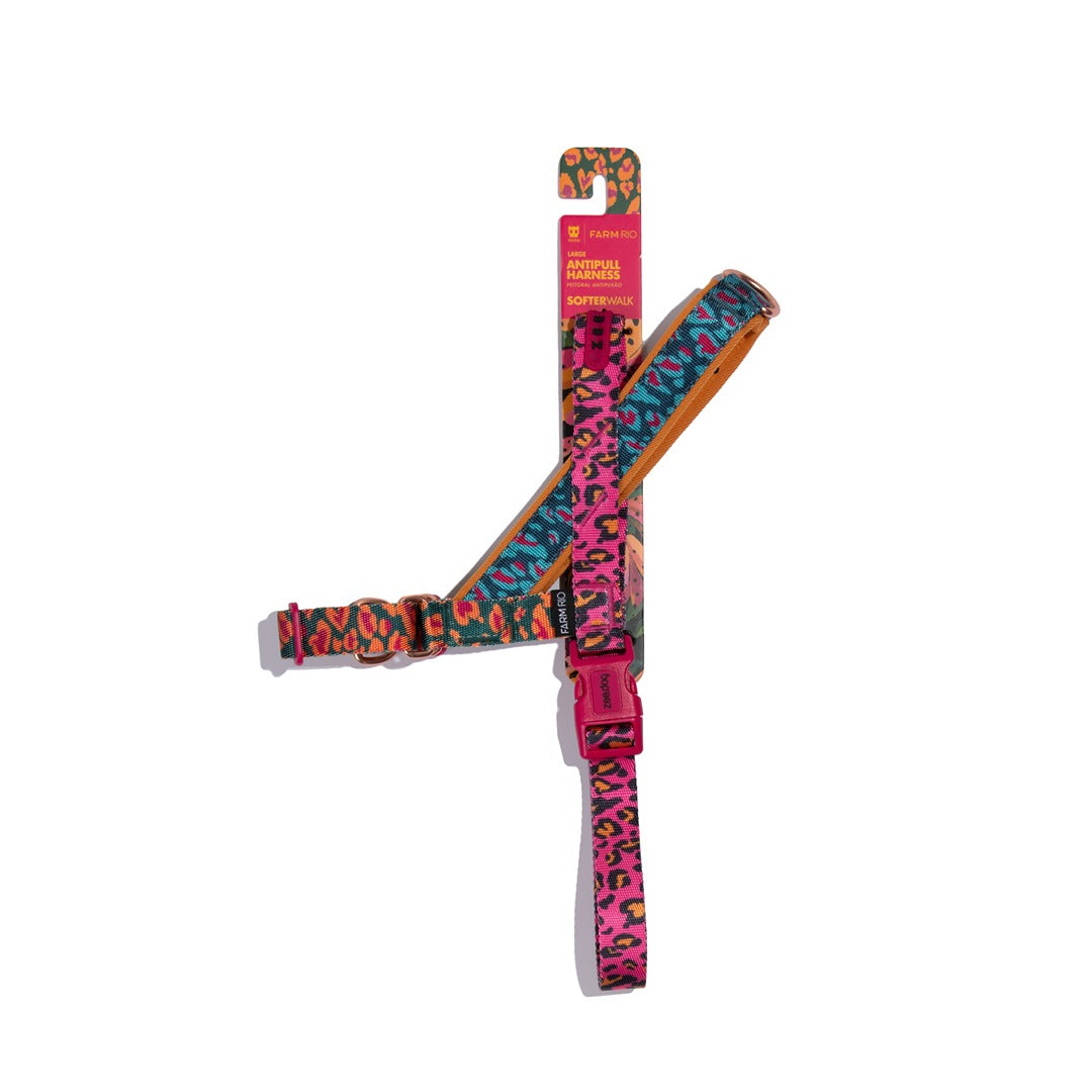 Selva SofterWalk Göğüs Tasması, hem sizin hem de köpeğinizin daha rahat ve pürüzsüz bir yürüyüş deneyimi yaşaması için tasarlanmış no-pull (çekiş önleyici) bir göğüs tasmasıdır. FARM Rio × Zee.Dog sınırlı sayılı koleksiyonunun bir parçası olan bu tasma, ikonik FARM Rio desenine sahiptir. Özellikle çekiş eğilimi olan köpekler için idealdir; önde ve arkada olmak üzere iki adet D-halkası bulunur. Köpeğiniz çekmeye çalıştığında ön halkaya bağlanan tasma onu nazikçe size doğru yönlendirir. Yumuşak kumaşı tüylerde konfor sağlar ve üst kısımdaki dolgulu kontrol sapı gerektiğinde hızlı müdahale imkânı sunar.